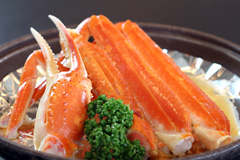 冬は身がたっぷり詰まったカニ、春と秋には選りすぐりのふぐ料理など、四季を感じる旬の食材やその日に獲れたばかりの新鮮な海の幸でおもてなし。
